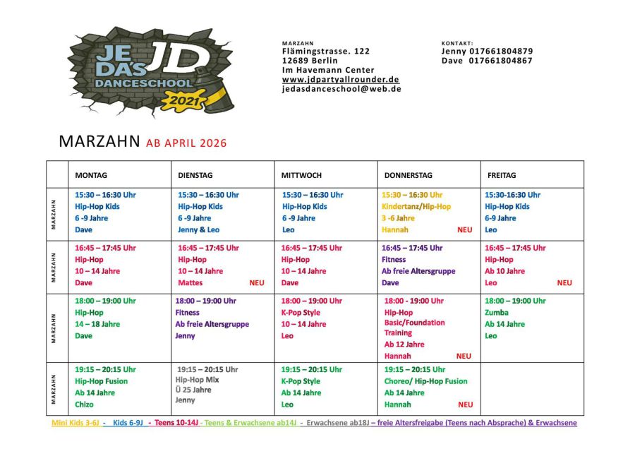 2. Schreibt uns eine Email: jedasdanceschool@web.de ,